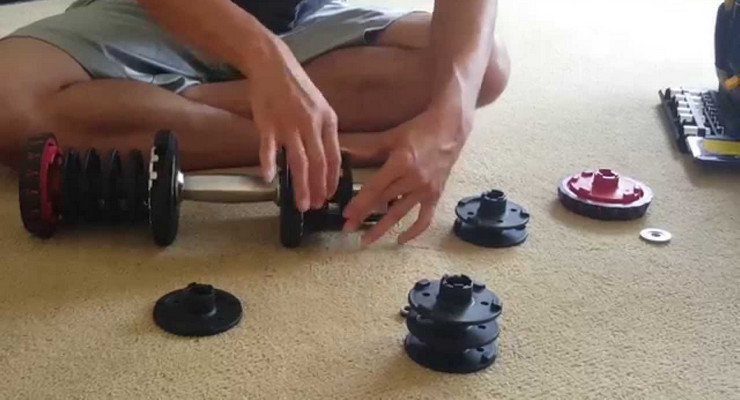アジャスタブルダンベルでプレートを付け直す方法